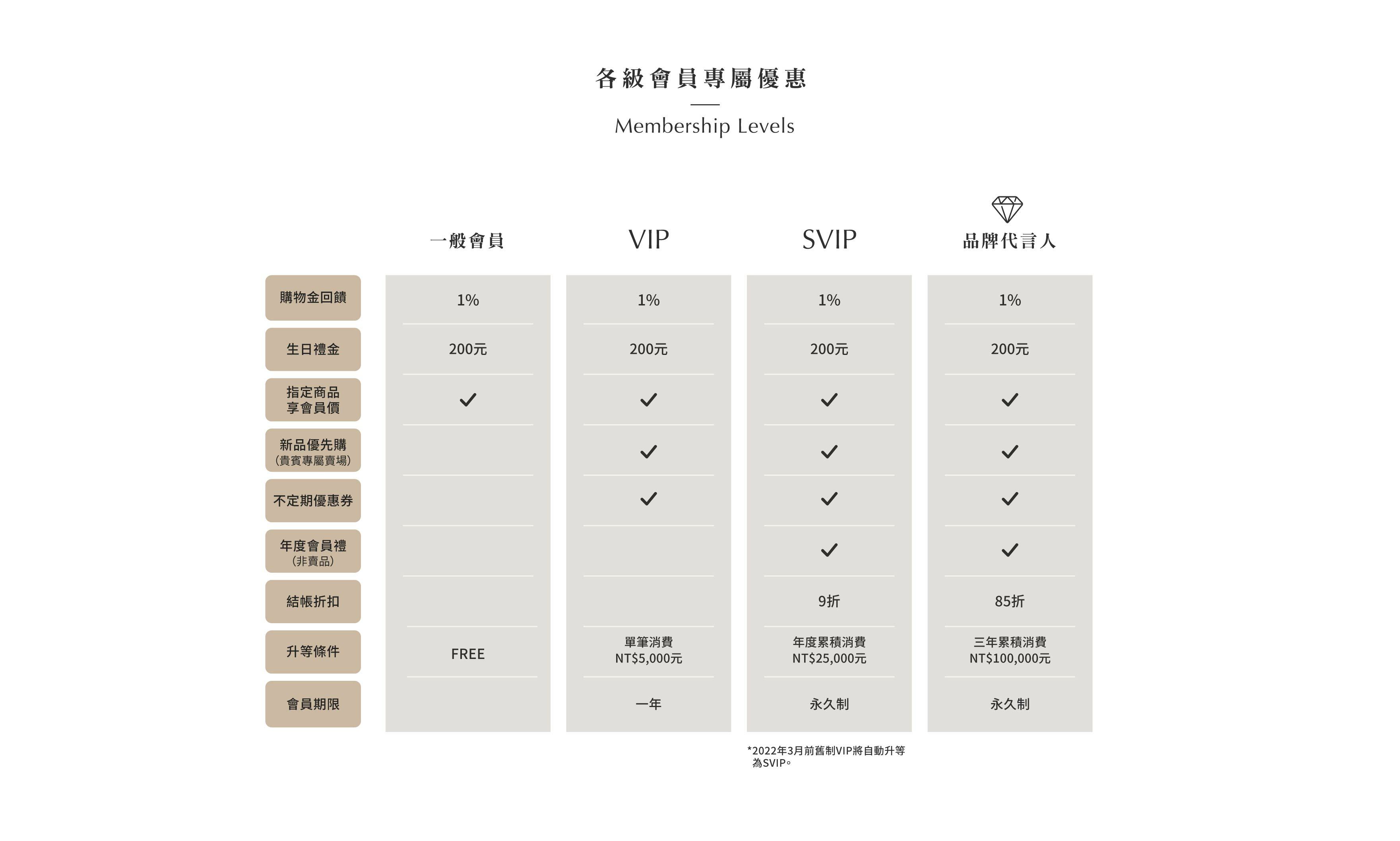 *本會員新制方案於2022年3月6日起正式實施。