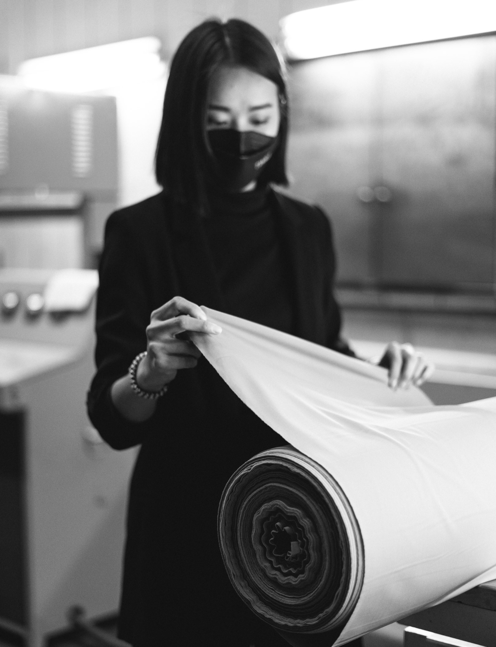 我們以環保為理念,從原料階段就加入顏色,減少染整過程,降低廢水和廢氣排放。在管理用水上更有意識,設定省水目標,以最少的用水換取最大的效益。紗線由在地採購,降低碳足跡。